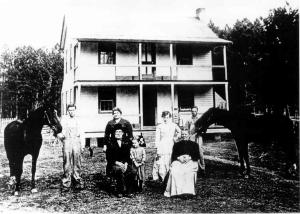 Charles H. Toler, Bertha Pipkin Toler standing behind James Lawrence Toler (seated), Rena Toler, Jo Edwards, Barbara Jones Edwards Toler, Tilman "Tim" Toler.